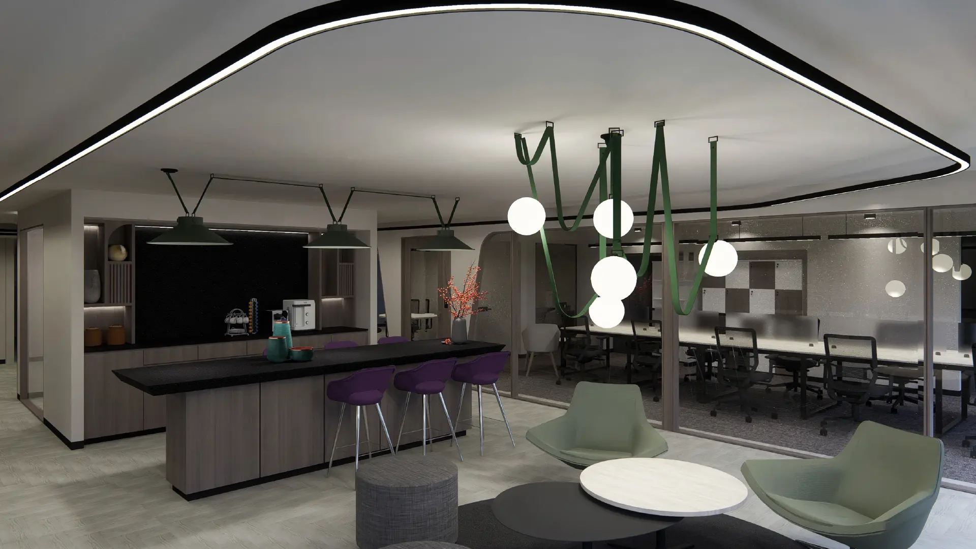 • Guaranteed natural light: 100% of our private offices feature floor-to-ceiling natural light.