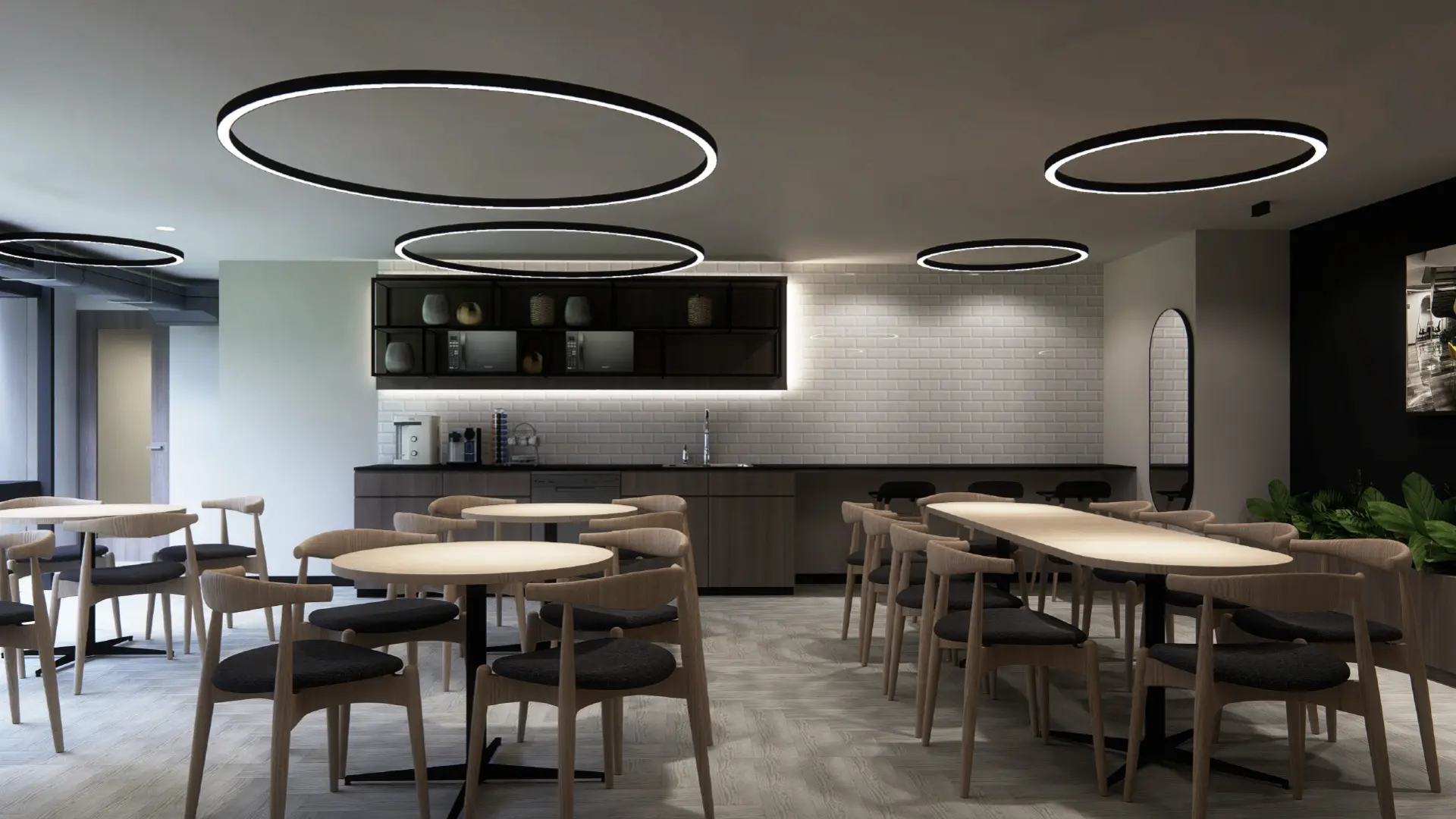 • Includes meeting rooms, Zoom rooms, coffee break area, and parking spaces.